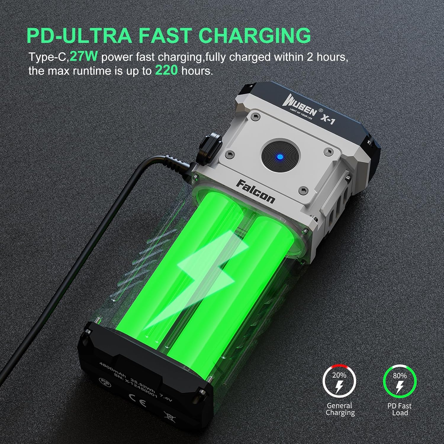 - HIGH-SPEED COOLING:WUBEN X1 led flashlight has temperature control and a built-in high-speed waterproof fan, the structure of active heat dissipation makes the flashlight achieve constant current without downshifting.