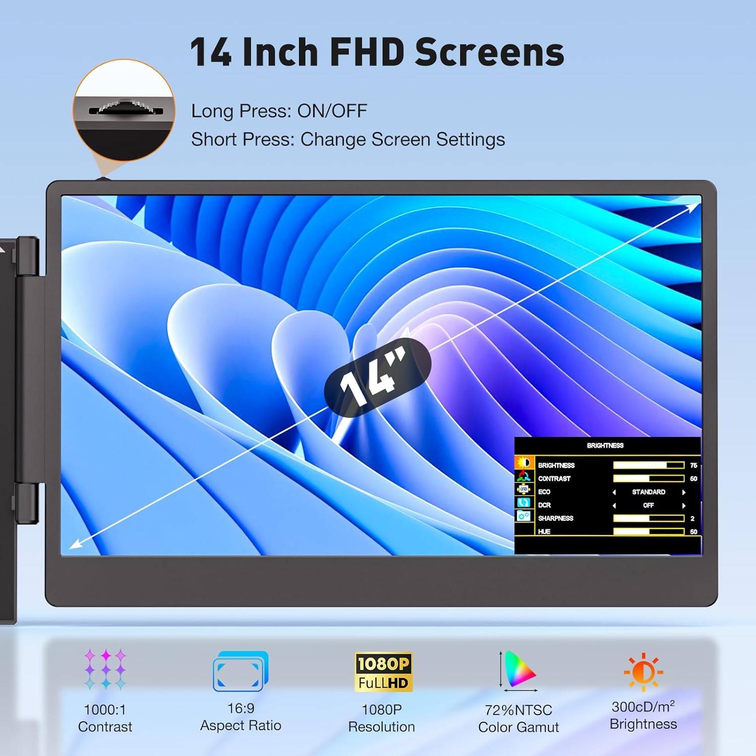 - Premium Display & Flexibility: Enjoy the dual 14'' 1080P FHD IPS full view screens with a brightness of 300 nits, delivering exceptional display quality. Both screens can be rotated 180 degrees forward for customization viewing angles. With multiple display modes such as mirror/extend, experience enhanced flexibility in usage