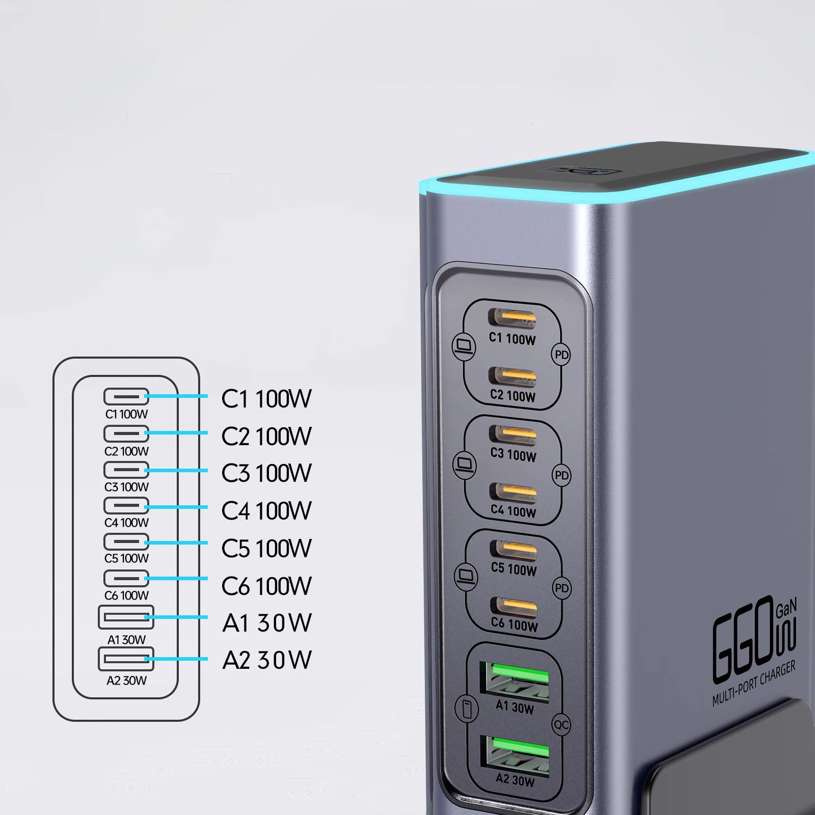 660W 8Ports High Power PD+QC3.0 GaN Desktop Charging Station