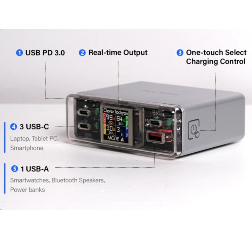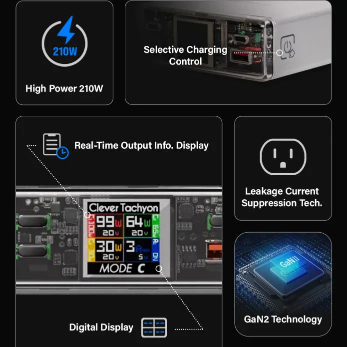 - _3 charging modes__he usb c charging station has three modes A/B/C to choose from and displays real-time charging power on the screen. For two laptops charging, you can choose Mode B. For multiple devices charging, you can choose Mode A/C. FEEYOO 200w usb c charger provides you with smart and flexible charging solutions.