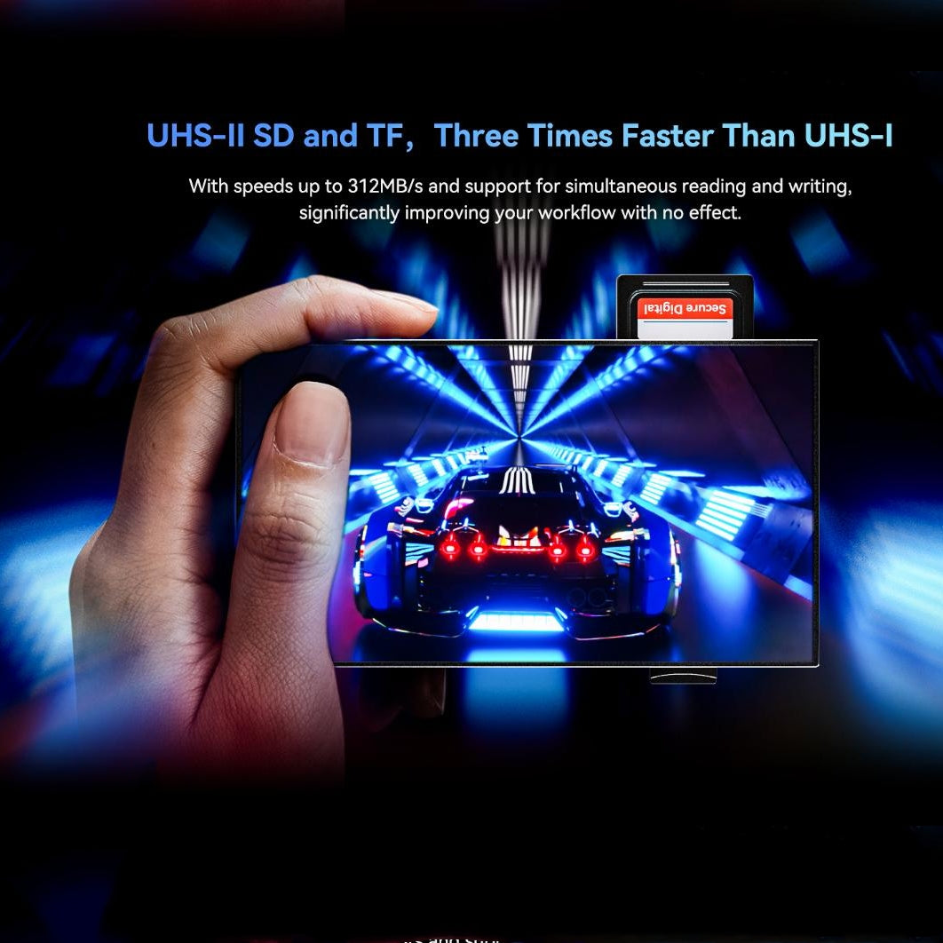UHS-II SD and TF: With speeds up to 312MB/s and support for simultaneous reading and writing, significantly improving your workflow with no effect.