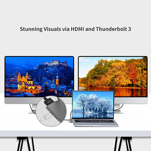 Dual Display Brilliance:Enjoy dual display output with HDMI [4K@60Hz] and Thunderbolt 3 [5K @ 60Hz] that supports mirror and extend modes, perfect for creating workstations or cinematic experiences.